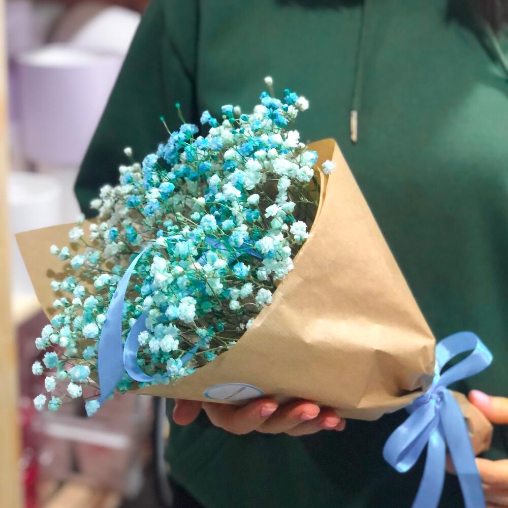 Очаровательный букет комплимент из воздушной гипсофилы.Инструкция по уходу за цветами прикреплена к каждому заказу.Цветы гипсофилы отличаются стойкостью и даже при высыхании не теряют, декоративности и цвета. Что позволяет, долгое время украшать интерьер в качестве сухоцветов.Подпишем открытку с вашими пожеланиями бесплатно